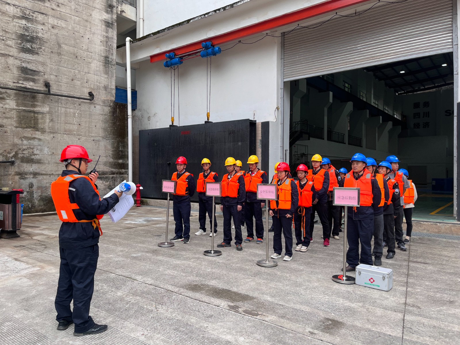 演練前,電廠組織全員學(xué)習(xí)了《玉田電廠2025年防洪度汛應(yīng)急演練方案》,演練于14時(shí)30分正式開(kāi)始,模擬玉田電廠三臺(tái)機(jī)組帶負(fù)荷93MW,越西縣氣象部門(mén)發(fā)布暴雨橙色預(yù)警,越西縣降暴雨已持續(xù)數(shù)小時(shí)。上游宏陽(yáng)電站和團(tuán)結(jié)電站準(zhǔn)備停機(jī)避峰已開(kāi)閘放水,尼日河道來(lái)水兇猛,預(yù)計(jì)來(lái)水流量達(dá)到800m3/s,閘首水位1274.5m的緊急情況。當(dāng)值值長(zhǎng)接到汛情后,迅速匯報(bào)防汛辦負(fù)責(zé)人。防汛辦負(fù)責(zé)人要求控制好水位,確保人員安全,并準(zhǔn)備停機(jī)避峰。隨后,險(xiǎn)情立即上報(bào)至防汛總指揮,總指揮接到險(xiǎn)情后,立即啟動(dòng)《玉田電廠防汛搶險(xiǎn)應(yīng)急預(yù)案》,成立現(xiàn)場(chǎng)指揮部,統(tǒng)籌調(diào)度防汛辦公室、安全督導(dǎo)組、應(yīng)急搶險(xiǎn)組、應(yīng)急后勤組等多支隊(duì)伍。大壩值班人員接到通知后拉響防洪警報(bào),開(kāi)啟沖砂閘和泄洪閘緩慢放水,控制水位,同時(shí)做好防汛物資準(zhǔn)備,并啟動(dòng)柴油發(fā)電機(jī)。當(dāng)班值長(zhǎng)向調(diào)度申請(qǐng)停機(jī)避峰,并及時(shí)向相關(guān)部門(mén)及下游電站通報(bào)汛情。三臺(tái)機(jī)組停機(jī)后,逐步開(kāi)啟沖砂閘和泄洪閘進(jìn)行泄洪。應(yīng)急搶險(xiǎn)組完成了廠房柴油發(fā)電機(jī)啟動(dòng)試驗(yàn),落下機(jī)組尾水閘門(mén),關(guān)閉主廠房防洪門(mén)并堆砌防洪沙袋。運(yùn)行值班人員加強(qiáng)設(shè)備和邊坡巡查。后勤組負(fù)責(zé)人員疏散和后勤保障工作。各小組協(xié)同作戰(zhàn),演練于15時(shí)49分圓滿結(jié)束。
