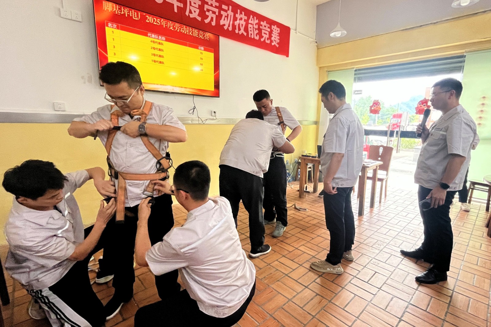 本次競(jìng)賽內(nèi)容涵蓋理論知識(shí)及實(shí)操技能等多個(gè)方面,來自發(fā)電部、維護(hù)部、綜合部及安環(huán)部的12名員工組成4支參賽隊(duì)伍,同臺(tái)競(jìng)技。理論知識(shí)比拼環(huán)節(jié),選手們圍繞黨建知識(shí)及安全知識(shí)展開激烈角逐,比賽現(xiàn)場(chǎng)氛圍激烈,全體參賽選手沉著應(yīng)對(duì)、你追我趕、互不示弱,用敏捷的思維和過硬的業(yè)務(wù)知識(shí)展現(xiàn)員工風(fēng)采,精彩的搶答贏得現(xiàn)場(chǎng)觀眾陣陣掌聲。實(shí)操比拼環(huán)節(jié),包括五點(diǎn)式安全帶穿戴比拼和AED模擬操作比拼,選手們不僅展現(xiàn)了個(gè)人實(shí)力,還相互學(xué)習(xí)、交流經(jīng)驗(yàn),不斷提升自己的專業(yè)技能和應(yīng)急處理能力。本次競(jìng)賽還特別設(shè)置了觀眾互動(dòng)環(huán)節(jié),通過不定時(shí)的觀眾互動(dòng)答題,活躍現(xiàn)場(chǎng)氣氛,讓全體員工都能參與到競(jìng)賽中來,共同學(xué)習(xí)、共同進(jìn)步。