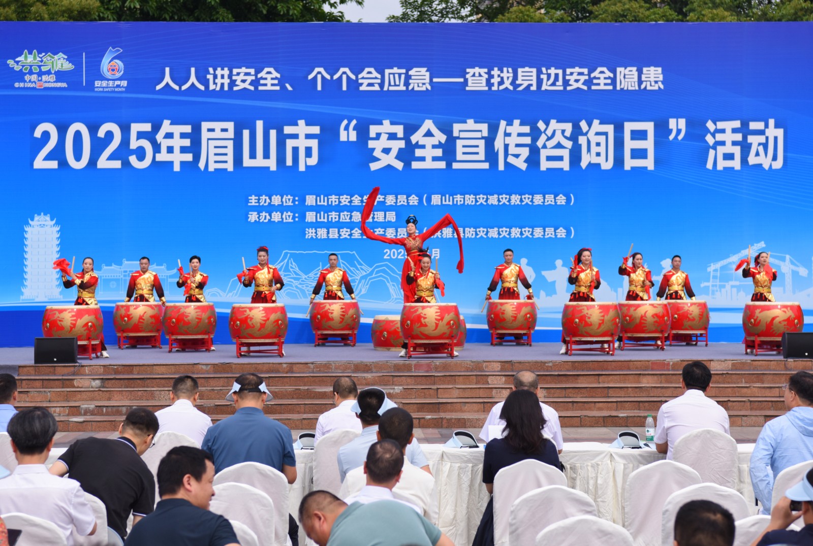 此次活動(dòng)以“人人講安全、個(gè)個(gè)會(huì)應(yīng)急——查找身邊安全隱患”為主題,吸引了眾多市民踴躍參與?;顒?dòng)當(dāng)日,洪雅新廣場(chǎng)上人頭攢動(dòng),熱鬧非凡。大鼓舞隊(duì)的隊(duì)員們身著鮮艷的服裝,精神抖擻地登上舞臺(tái)。隨著音樂(lè)的響起,隊(duì)員們揮動(dòng)手中的鼓槌,以磅礴的氣勢(shì)、整齊的節(jié)奏敲響大鼓。激昂的鼓聲瞬間點(diǎn)燃了現(xiàn)場(chǎng)氣氛,贏得了臺(tái)下觀眾的陣陣掌聲和歡呼聲。