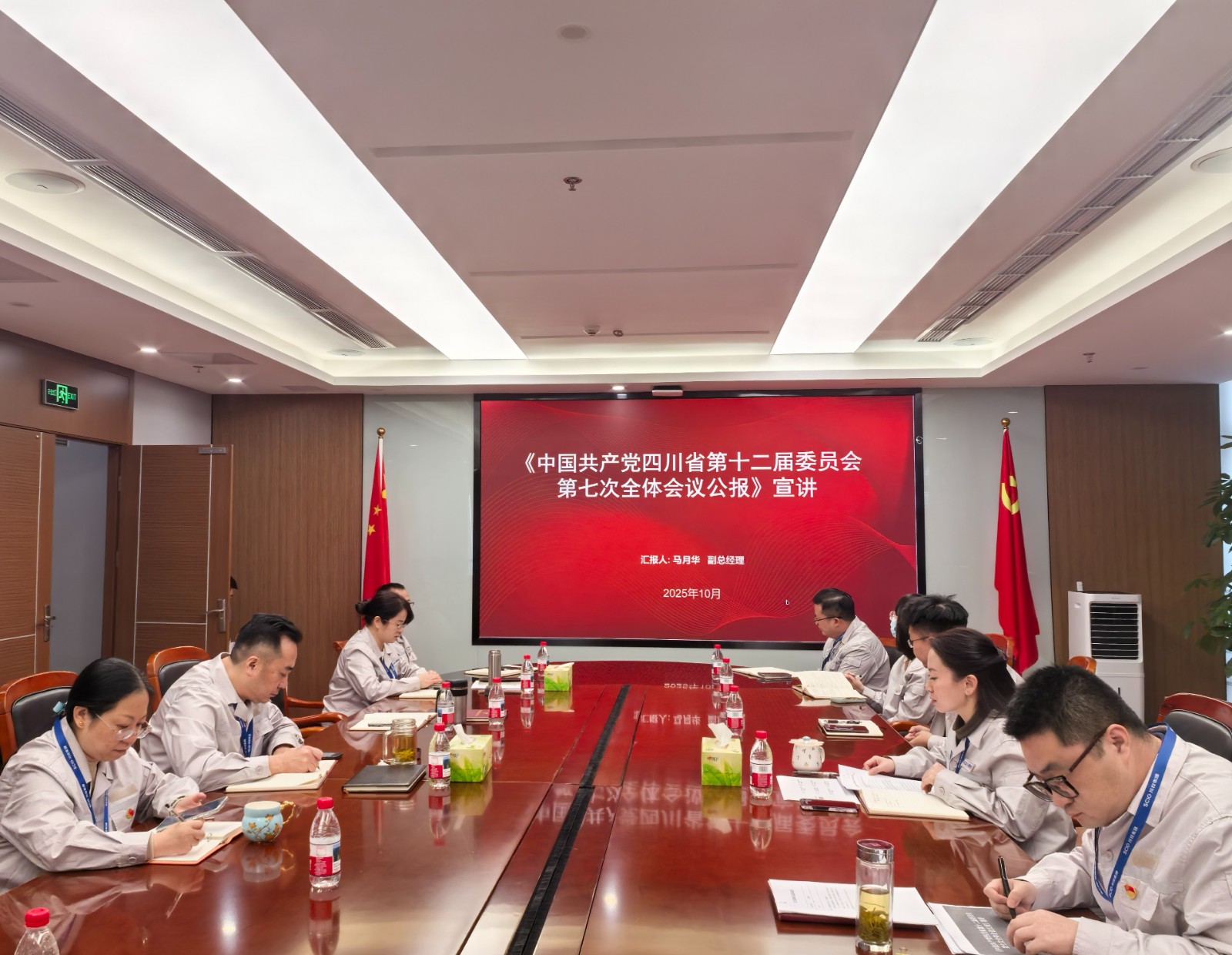 接著,川投電力副總經(jīng)理馬月華宣講了省委第十二屆七次全會精神,會議強調(diào),全體黨員干部要立足崗位、找準落實全會精神的結合點,為奮力譜寫中國式現(xiàn)代化四川新篇章作出新的更大貢獻;要結合自身思想和工作實際,深刻領會全會精神實質(zhì)、在本職崗位上踐行初心使命、發(fā)揮先鋒模范作用;要將全會精神轉化為強大的精神動力和務實的工作舉措,勇于擔當,敢于作為,爭當崗位先鋒,在服務大局、推動發(fā)展、服務群眾中展現(xiàn)新時代共產(chǎn)黨員的風采。