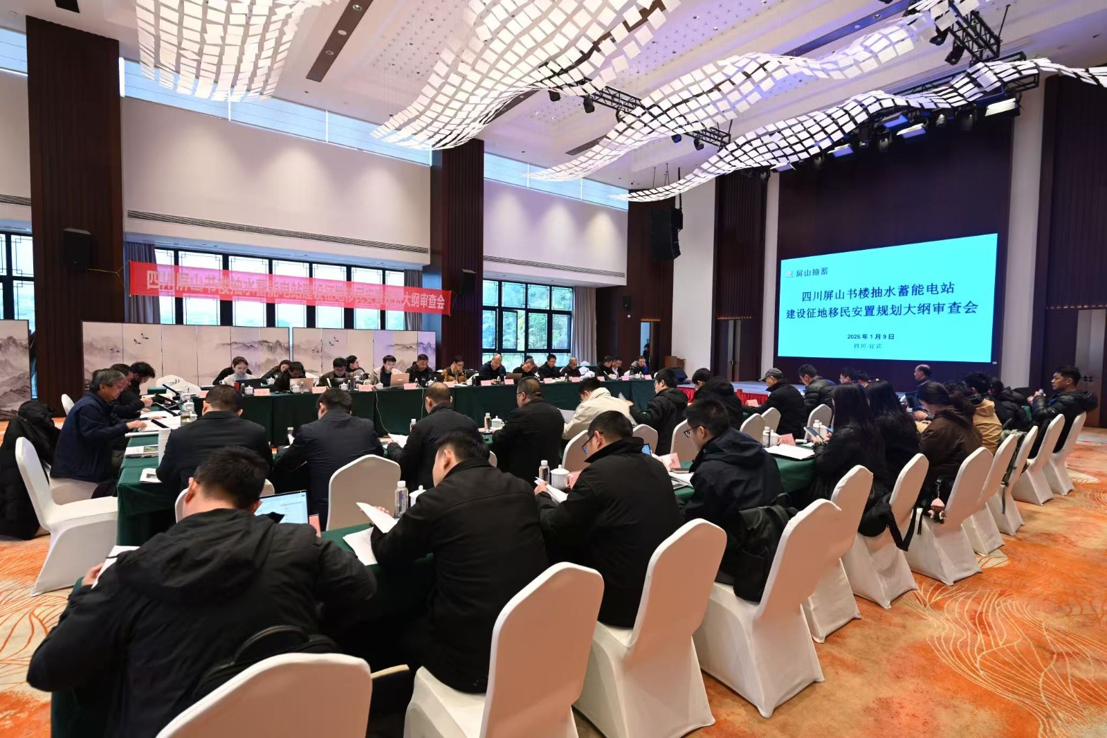 1月8日至9日,四川省屏山書樓抽水蓄能電站《征地移民安置規(guī)劃大綱》審查會議在屏山書樓召開。會議由水電水利規(guī)劃設(shè)計總院首席技術(shù)專家郭萬偵主持,四川省水利廳三級調(diào)研員王珂,川投能源副總經(jīng)理、屏山抽蓄公司董事長王行仁出席會議,水利水電規(guī)劃設(shè)計總院專家組,四川省、宜賓市、屏山縣政府相關(guān)部門,川投能源、屏山抽蓄、攀新能源及中國電建成都院等單位代表和專家參加會議。