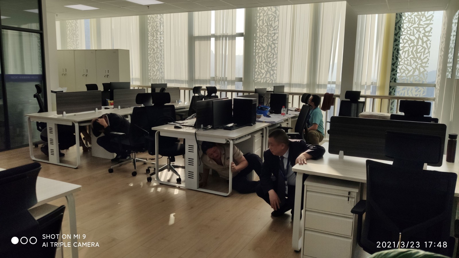 同日下午,攀水電公司在鋼城經(jīng)貿(mào)大廈A座辦公樓(26樓)會(huì)議室進(jìn)行了地震災(zāi)害疏散演練培訓(xùn)。演練開始前,組織觀看了地震災(zāi)害應(yīng)急知識(shí)短視頻,并介紹講解了辦公樓緊急疏散通道和疏散路線,強(qiáng)調(diào)了避震原則以及緊急避震、緊急疏散、緊急搶救相關(guān)知識(shí)與注意事項(xiàng)。17點(diǎn)45分05秒,模擬演練發(fā)生4.8級(jí)地震,震源深度為12公里,震感強(qiáng)烈,各參演人員按照緊急避震原則,采取低頭、蜷曲身體、爬入辦公桌下等有利于避震的方式防護(hù)身體重要部位。主震結(jié)束后,公司第一時(shí)間啟動(dòng)應(yīng)急響應(yīng),立即組織各參演人員按照既定的疏散路線安全撤離到達(dá)指定區(qū)域。