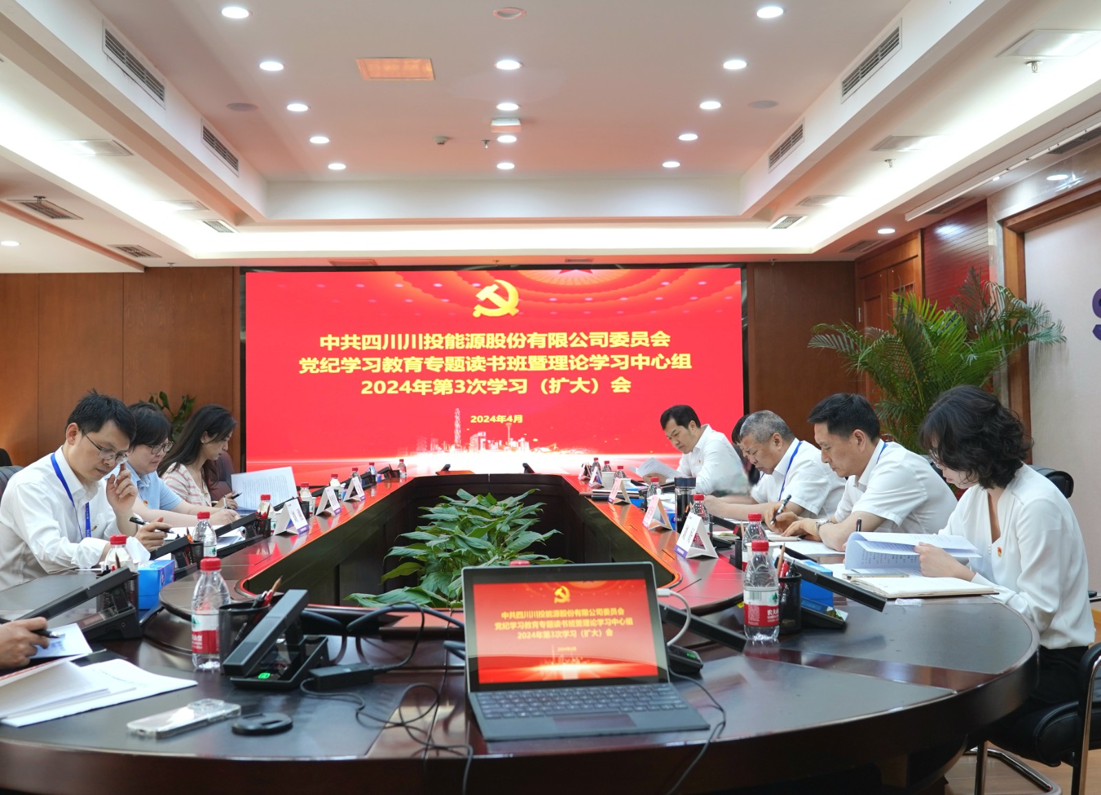 4月26日,川投能源黨委黨紀(jì)學(xué)習(xí)教育專題讀書(shū)班結(jié)業(yè)式暨理論學(xué)習(xí)中心組2024年第3次學(xué)習(xí)(擴(kuò)大)會(huì)召開(kāi)。公司黨委書(shū)記、副董事長(zhǎng)、總經(jīng)理?xiàng)詈橹鞒謺?huì)議并講話。