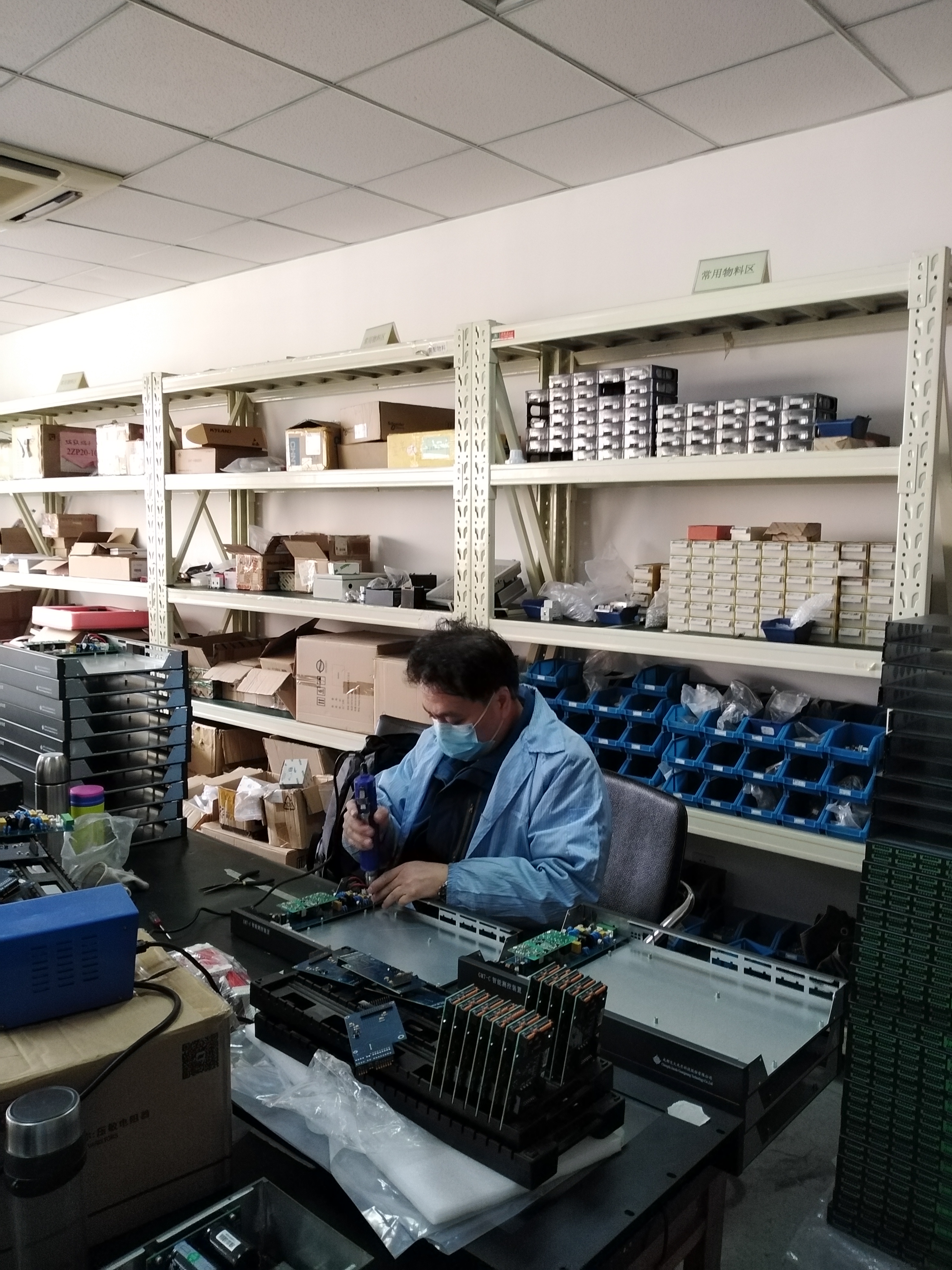 為保證各項目進(jìn)度需要,公司生產(chǎn)供應(yīng)部作為交大光芒復(fù)工復(fù)產(chǎn)產(chǎn)品物資戰(zhàn)線的主陣地,擔(dān)負(fù)著提供國鐵和城市軌道供電監(jiān)控系統(tǒng)核心產(chǎn)品的生產(chǎn)重任。以夏佐平為負(fù)責(zé)人的生產(chǎn)調(diào)試組,面對持續(xù)緊張的產(chǎn)品需求,大家沒有彷徨猶豫、沒有恐懼退縮,主動要求第一批復(fù)工。團(tuán)隊成員一個個身穿厚重的防護(hù)服,規(guī)范戴好口罩,仔細(xì)完成消殺措施,心無旁騖地堅守在工作崗位。疫情襲來,平日里車水馬龍的工作園區(qū)現(xiàn)在顯得是空曠寂靜,熱鬧的辦公室也是人員寥寥無幾,面對1500套GM7-C裝置的生產(chǎn)任務(wù),夏佐平和生產(chǎn)供應(yīng)部的6位同仁們錨定一顆恒心,付諸百般努力,誓要按節(jié)點(diǎn)完成生產(chǎn)交付,為鐵路運(yùn)輸一線和疫情防控提供可靠的裝備,模板調(diào)試、程序灌裝、機(jī)電裝配、整機(jī)測試、高溫老化……,一道道精密工序在團(tuán)隊成員們的手里執(zhí)行歸位,團(tuán)隊協(xié)作秩序井然,確保雅萬、合安九等重點(diǎn)項目產(chǎn)品的順利按約交付。生產(chǎn)線上的每一根接線,每一次焊接,每一顆螺絲緊固,每一次調(diào)式數(shù)據(jù)測試,是他們對于疫情防控阻擊戰(zhàn)和企業(yè)生產(chǎn)經(jīng)營保衛(wèi)戰(zhàn)最質(zhì)樸的詮釋。