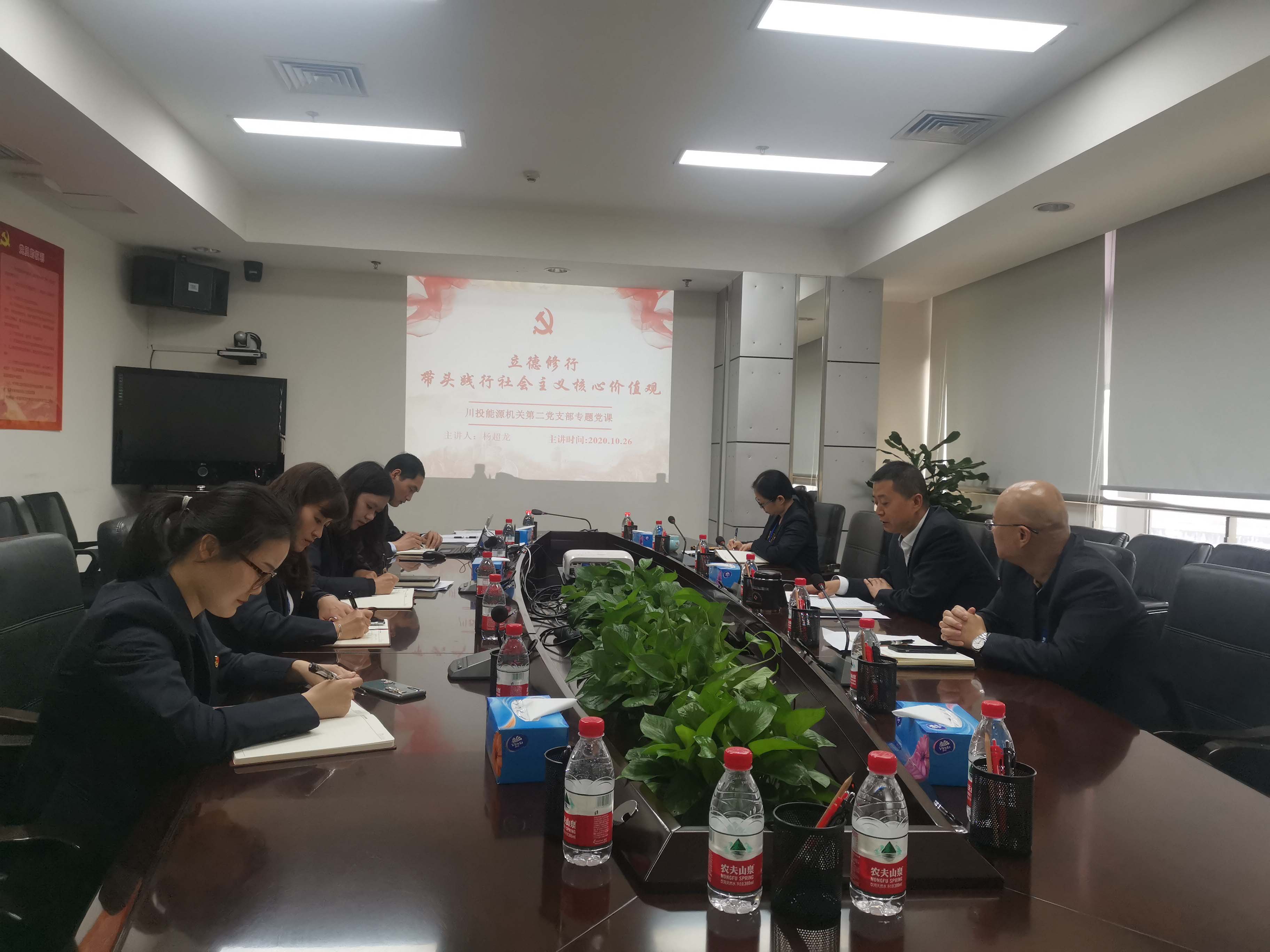 10月26日,川投能源機關第二黨支部召開黨員大會,公司黨委副書記、工會主席楊超龍以《立德修行,帶頭踐行社會主義核心價值觀》為題,就社會主義核心價值觀的內(nèi)容、重要意義以及黨員干部如何踐行三個方面,結(jié)合理論與自身感悟,深入淺出地為二支部黨員講授了一堂精彩的黨課。