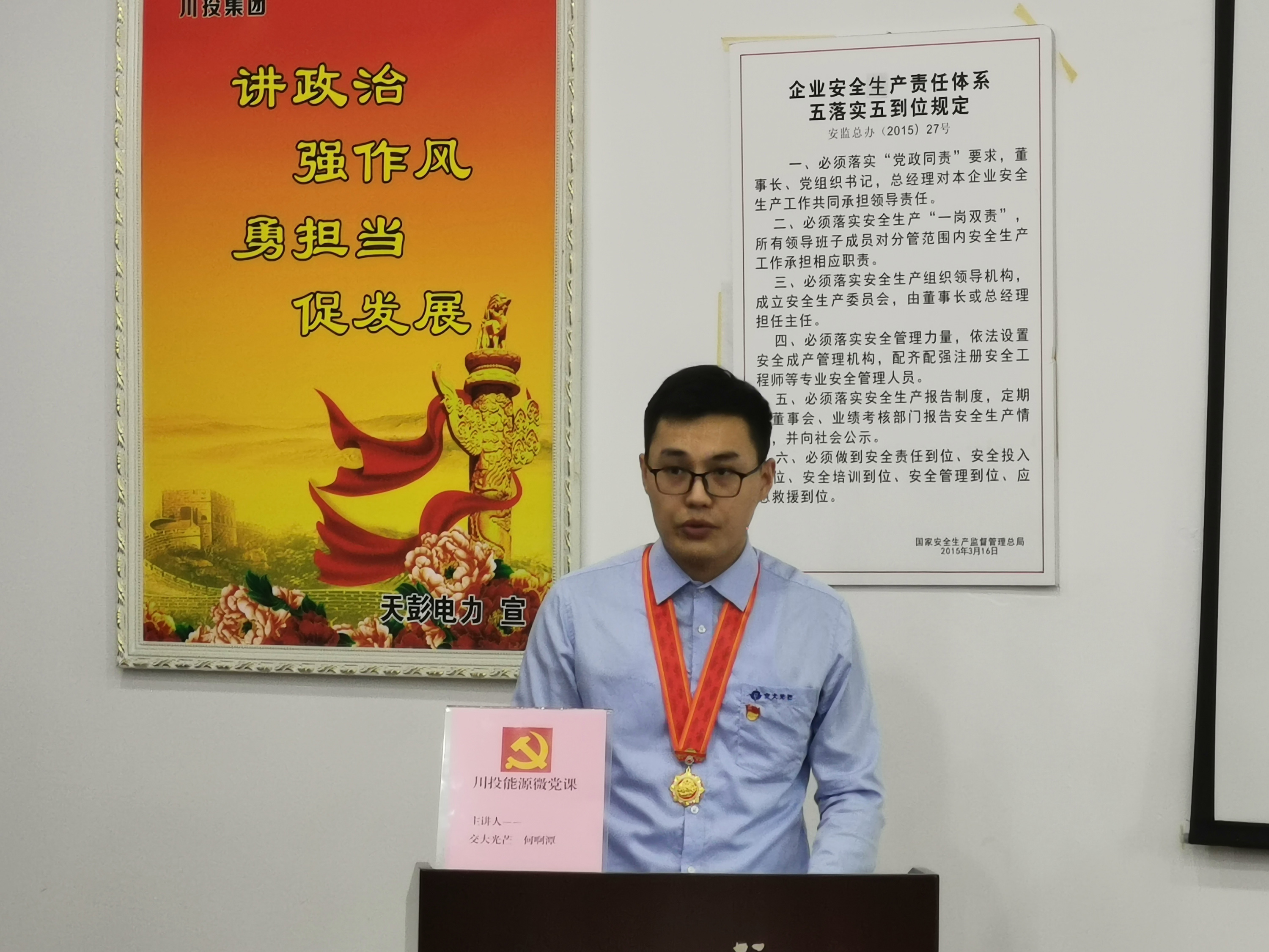 11月18日,川投能源微黨課首講在天彭電力展開(kāi),主講者是剛獲得四川省“四川省抗擊新冠肺炎疫情先進(jìn)個(gè)人”光榮稱(chēng)號(hào)、來(lái)自交大光芒事業(yè)二部的技術(shù)工程師何啊潭。
